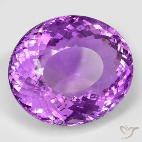 Dies ist ein natürlicher, Mittelviolettes Violett Amethyst-Edelstein mit 96.04 Karat, 1 Stück in Oval Form mit einer genauen Größe von 33.25 x 28.82 x 17.83 mm. Dieser lose Amethyst wurde in Brasilien abgebaut und hat die Reinheit VVS-VS (augenrein). Dieser natürliche Amethyst wurde nicht behandelt.