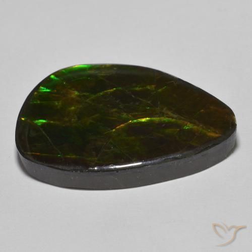 Dies ist ein natürlicher, Mehrfarbig Ammolith-Edelstein mit 24.89 Karat, 1 Stück in Fantasie Form mit einer genauen Größe von 27.27 x 18.84 x 4.97 mm. Dieser lose Ammolith wurde in Kanada abgebaut und hat die Reinheit Lichtundurchlässig.