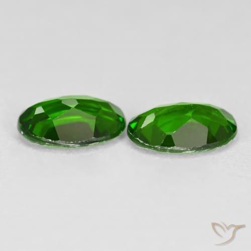 Dies sind 1.35 Karat natürliche Bright Forest Green Chromdiopsid-Edelsteine, 2 Stück in Oval Form mit einer genauen Größe von 6.92 x 4.85 x 2.54 mm. Diese losen Chromdiopsid-Edelsteine wurden in Russland abgebaut und haben die Reinheit VS (augenrein). Diese natürlichen Chromdiopsid-Edelsteine wurden nicht behandelt.