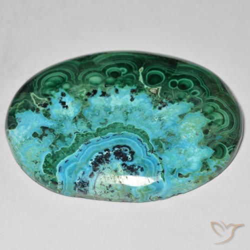 Dies ist ein natürlicher, Mehrfarbig Chrysokoll-Edelstein mit 77.09 Karat, 1 Stück in Oval Form mit einer genauen Größe von 41.99 x 33.37 x 5.55 mm. Dieser lose Chrysokoll wurde in Australien abgebaut und hat die Reinheit Lichtundurchlässig. Dieser natürliche Chrysokoll wurde nicht behandelt.