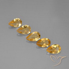 Dies sind 5.31 Karat natürliche Golden Citrin-Edelsteine, 6 Stück in Birnenform Form mit einer genauen Größe von 7.91 x 5.06 x 4.39 mm. Diese losen Citrin-Edelsteine wurden in Brasilien abgebaut und haben die Reinheit VS (augenrein). Diese natürlichen Citrin-Edelsteine wurden nicht behandelt.