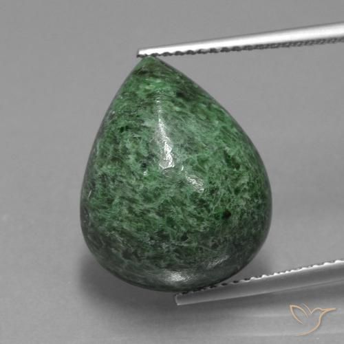 Dies ist ein natürlicher, Kieferngrün Mawsitsit-Edelstein mit 8.26 Karat, 1 Stück in Birnenform Form mit einer genauen Größe von 16.41 x 11.20 x 6.57 mm. Dieser lose Mawsitsit wurde in Myanmar abgebaut und hat die Reinheit Lichtundurchlässig. Dieser natürliche Mawsitsit wurde nicht behandelt.