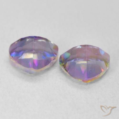 Dies sind 1.46 Karat natürliche Multicolor Mystischer Quarz-Edelsteine, 2 Stück in Trillion Form mit einer genauen Größe von 6.12 x 6.02 x 3.70 mm. Diese losen Mystischer Quarz-Edelsteine wurden in Brasilien abgebaut und haben die Reinheit VVS (augenrein).