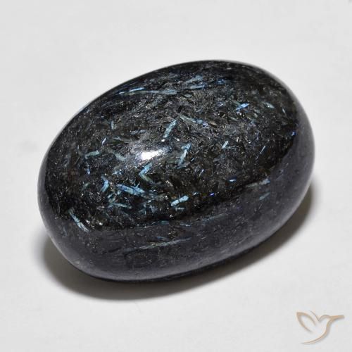 Dies ist ein natürlicher, Schwarz mit blauem Glanz Nuummite-Edelstein mit 20.13 Karat, 1 Stück in Oval Form mit einer genauen Größe von 21.05 x 14.85 x 8.03 mm. Dieser lose Nuummite wurde in Indien abgebaut und hat die Reinheit Lichtundurchlässig. Dieser natürliche Nuummite wurde nicht behandelt.