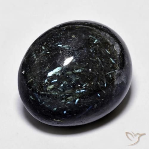 Dies ist ein natürlicher, Schwarz mit blauem Glanz Nuummite-Edelstein mit 27.94 Karat, 1 Stück in Oval Form mit einer genauen Größe von 20.07 x 17.67 x 9.64 mm. Dieser lose Nuummite wurde in Indien abgebaut und hat die Reinheit Lichtundurchlässig. Dieser natürliche Nuummite wurde nicht behandelt.