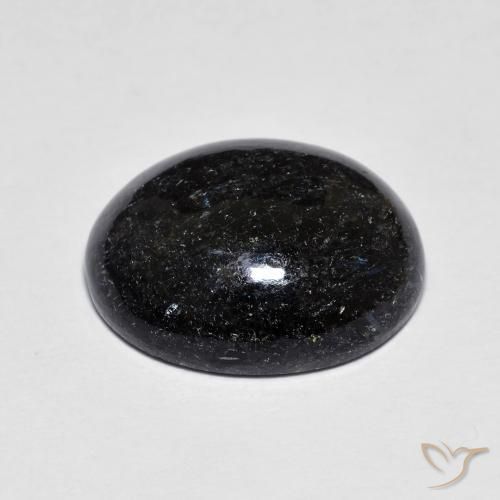 Dies ist ein natürlicher, Schwarz mit blauem Glanz Nuummite-Edelstein mit 9.11 Karat, 1 Stück in Oval Form mit einer genauen Größe von 15.10 x 12.63 x 5.83 mm. Dieser lose Nuummite wurde in Indien abgebaut und hat die Reinheit Lichtundurchlässig. Dieser natürliche Nuummite wurde nicht behandelt.