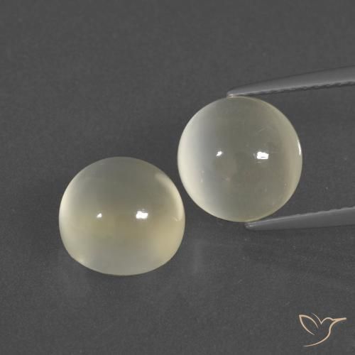Zu den milchig weißen Edelsteinen gehören oft weiße Mondsteine, die für ihr sanftes, leuchtendes Aussehen und ihre Vielseitigkeit im Schmuckdesign bekannt sind.