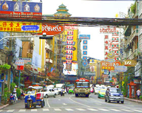 Before the reign of King Rama V in the 1800s, gold was considered a noble metal that was not permitted to be worn by ordinary Thais. However, nowadays, the Thai public enjoys the luxury of gold jewelry. Thailand is a hub for gold trade, particularly a district of Bangkok known as Yaowarat, or Chinatown. As the name suggests, Yaowarat is the area of Bangkok that was settled by the Chinese around 200 years ago. It is an old and eclectic part of Bangkok where visitors can enjoy good food, smell the perfume of a huge fresh flower market, get lost in the "Thieves Market", see crocodiles or the world's largest solid gold Buddha at a temple, buy traditional Chinese medicine or choose fine gold jewelry from over 130 gold shops.