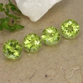 Dies sind 3.32 Karat natürliche Lively Yellowish Green Peridot-Edelsteine, 4 Stück in Runden Form mit einer genauen Größe von 5.88 mm x 4.02 mm (avg.). Diese losen Peridot-Edelsteine wurden in China abgebaut und haben die Reinheit VS (augenrein). Diese natürlichen Peridot-Edelsteine wurden nicht behandelt.