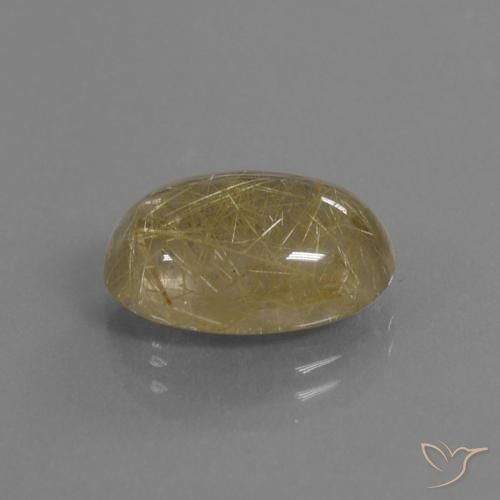 Dies ist ein natürlicher, Erdiges Gelb Rutilquarz-Edelstein mit 7.75 Karat, 1 Stück in Oval Form mit einer genauen Größe von 15.21 x 11.06 x 6.12 mm. Dieser lose Rutilquarz wurde in Indien abgebaut und hat die Reinheit Transparent. Dieser natürliche Rutilquarz wurde nicht behandelt.