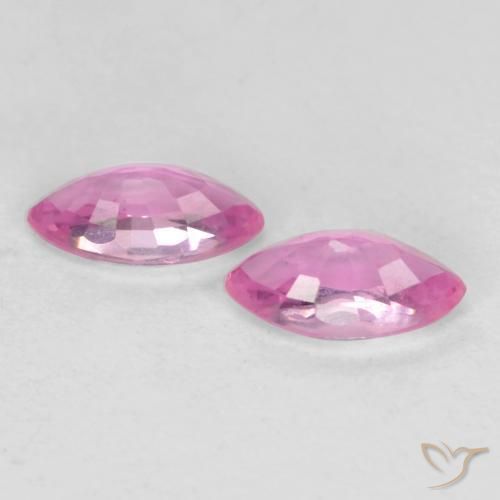 Dies sind 0.46 Karat natürliche Bright Pinkish Purple Saphir-Edelsteine, 2 Stück in Marquise Form mit einer genauen Größe von 5.13 x 2.78 x 2.07 mm. Diese losen Saphir-Edelsteine wurden in Tansania abgebaut und haben die Reinheit VS (augenrein). Diese natürlichen Saphir-Edelsteine wurden erhitzt, um ihre leuchtende Farbe hervorzuheben.