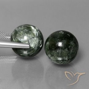 Dies sind 38.93 Karat natürliche Green Seraphinite-Edelsteine, 2 Stück in Kugel / Ball Form mit einer genauen Größe von 14.17 mm (avg.). Diese losen Seraphinite-Edelsteine wurden in Russland abgebaut und haben die Reinheit Lichtundurchlässig. Diese natürlichen Seraphinite-Edelsteine wurden nicht behandelt.