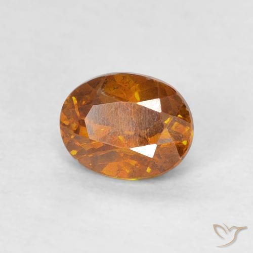 Dies ist ein natürlicher, tieforange Sphalerit-Edelstein mit 0.64 Karat, 1 Stück in Oval Form mit einer genauen Größe von 5.28 x 4.16 x 3.12 mm. Dieser lose Sphalerit wurde in Spaniem abgebaut und hat die Reinheit SI-I1. Dieser natürliche Sphalerit wurde nicht behandelt.