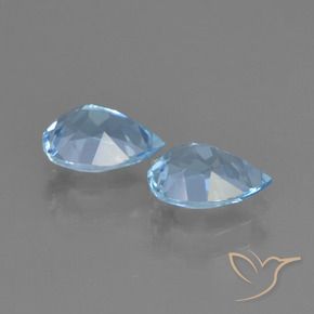 Dies sind 1.79 Karat natürliche Swiss Blue Topas-Edelsteine, 2 Stück in Birnenform Form mit einer genauen Größe von 7.22 x 5.21 x 3.57 mm. Diese losen Topas-Edelsteine wurden in Brasilien abgebaut und haben die Reinheit VS (augenrein).