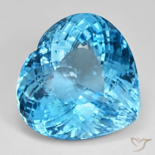 Dies ist ein natürlicher, Swiss Blue Topas-Edelstein mit 126.78 Karat, 1 Stück in Herz Form mit einer genauen Größe von 30.25 x 30.05 x 19.17 mm. Dieser lose Topas wurde in Brasilien abgebaut und hat die Reinheit IF (augenrein).