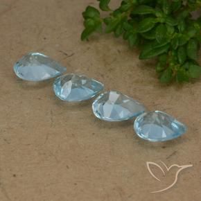 Dies sind 2.88 Karat natürliche Swiss Blue Topas-Edelsteine, 4 Stück in Birnenform Form mit einer genauen Größe von 6.53 x 4.88 x 3.51 mm. Diese losen Topas-Edelsteine wurden in Brasilien abgebaut und haben die Reinheit VVS-VS (augenrein).