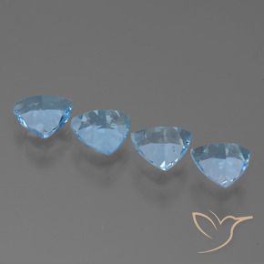 Dies sind 4.54 Karat natürliche Sky Blue Topas-Edelsteine, 4 Stück in Trillion Form mit einer genauen Größe von 6.74 x 6.77 x 4.19 mm. Diese losen Topas-Edelsteine wurden in Brasilien abgebaut und haben die Reinheit VVS-VS (augenrein).