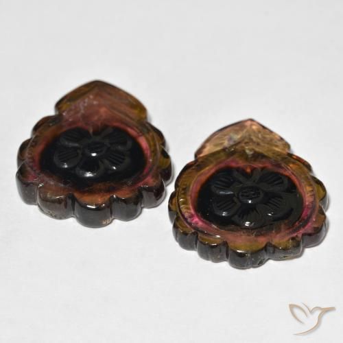 Dies sind 50.45 Karat natürliche Multicolor Turmalin-Edelsteine, 2 Stück in Blumen-Schliff Form mit einer genauen Größe von 27.71 x 21.80 x 4.55 mm. Diese losen Turmalin-Edelsteine wurden in Mosambik abgebaut und haben die Reinheit Transparent. Diese natürlichen Turmalin-Edelsteine wurden nicht behandelt.