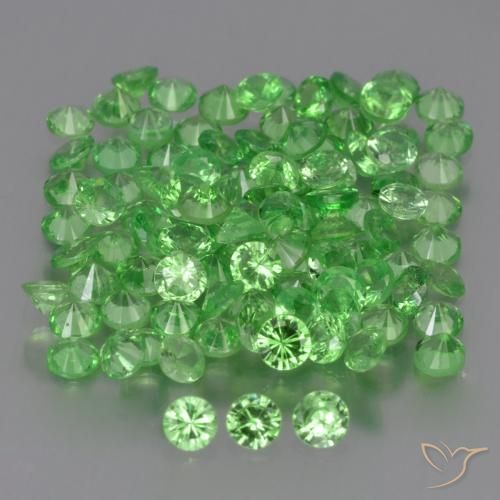 Dies sind 4.76 Karat natürliche Lively Green Tsavorit-Granat-Edelsteine, 100 Stück in Runden Form mit einer genauen Größe von 2.26 mm x 1.12 mm (avg.). Diese losen Tsavorit-Granat-Edelsteine wurden in Kenia abgebaut und haben die Reinheit VS (augenrein). Diese natürlichen Tsavorit-Granat-Edelsteine wurden nicht behandelt.
